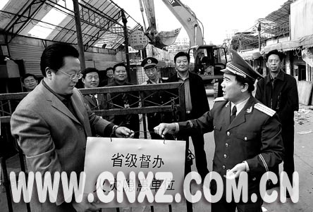 11月8日下午,省級(jí)督辦、市級(jí)掛牌的我市重大火災(zāi)隱患單位宣武市場(chǎng),由于其東市場(chǎng)的整體拆除而摘下了警示牌。這是我市歷史上第一次對(duì)重大火災(zāi)隱患部位實(shí)施整體拆除。明年,一個(gè)現(xiàn)代化的新市場(chǎng)將在原址建成。