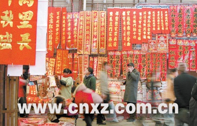 ????? 1月18日始,市宣武市場(chǎng)舉辦迎新年春聯(lián)大展銷,來(lái)自蘇魯豫皖周邊地區(qū)的小商販趁著好天氣紛紛前來(lái)選購(gòu)。